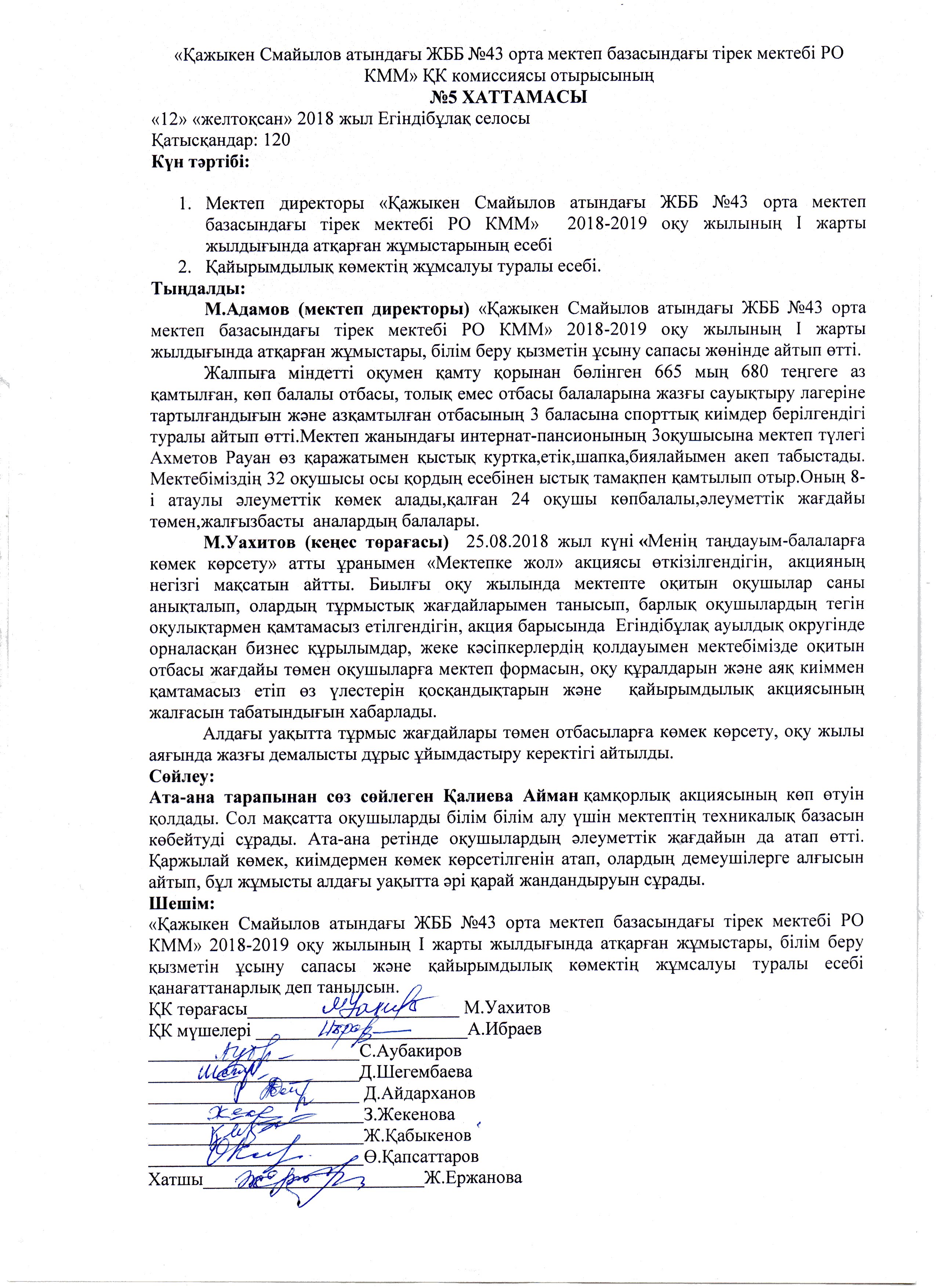КГУ «Общеобразовательная школа №5 села Егиндыбулак»
